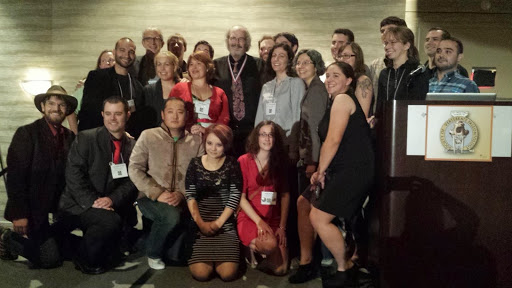 | Dr. Jack Horner with some of his former and current students after receiving the Romer-Simpson Medal at the Society of Vertebrate Paleontology annual meeting. |