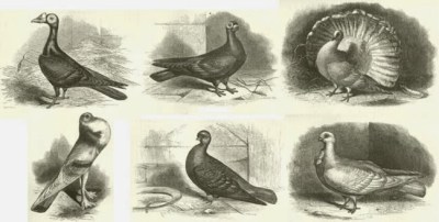 Birds still played an important part in Darwin’s theory. But it was a different group that influenced Darwin’s ideas on natural selection: pigeons. Charles Darwin was a pigeon fancier. The Victorian Period (1830-1900) was known for it’s Cabinets of Curiosities. These were for people to display their collections, and people loved to collect and display all sorts of natural history items – fossils, exotic skins and furs, artifacts, etc. People extended their curios to live animals, as Victorian England also saw an increased interest in animal husbandry and breeding. Collections of cattle, dog, sheep, and pigeon breeds were common. But Darwin wasn’t just a collector and keeper of pigeons, he turned his pigeons into an experiment. He found that he could take one species, Columba livia, and, through selective breeding, breed hundreds of varieties. By choosing which male pigeon mated with which female, he could study how variation could be introduced into a population, and how specific variable characteristics could be passed from one generation to the next. It was these observations during pigeon breeding – artificial selection – that he could articulate how the environment could drive changes in the wild – natural selection.