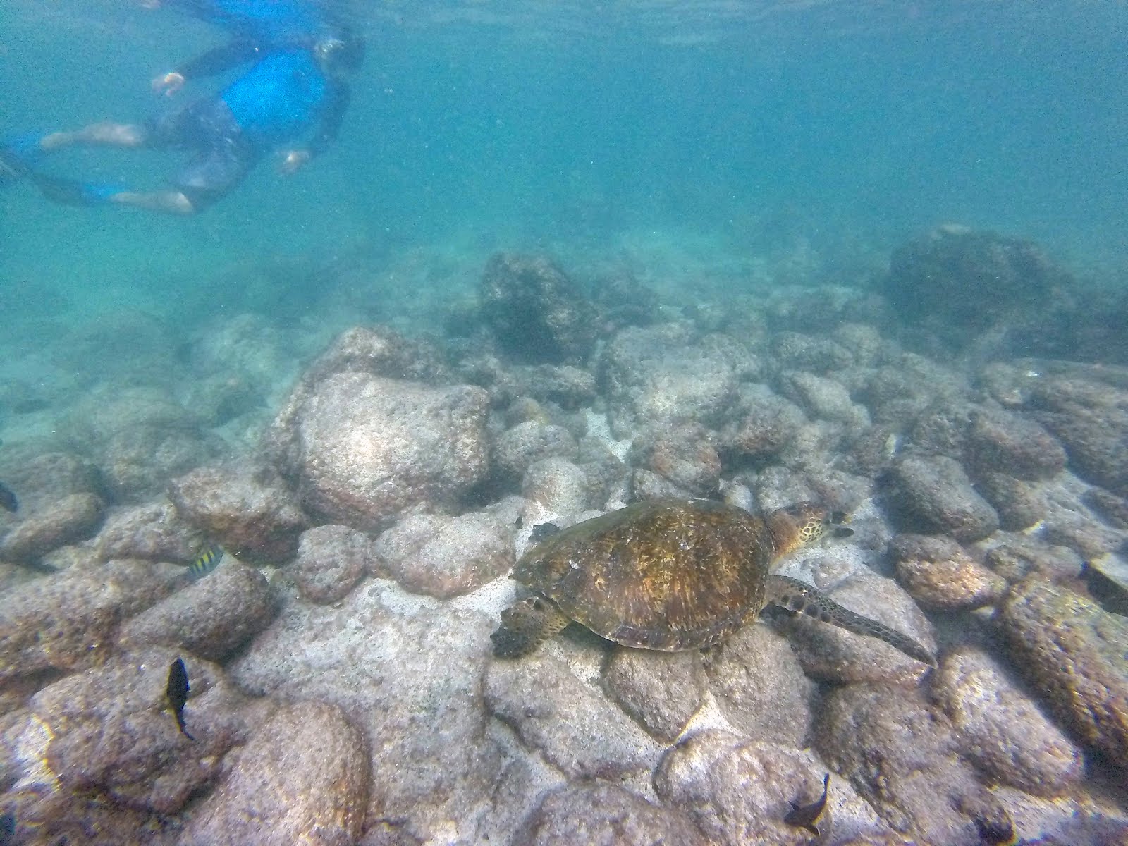 Although today was long, I truly enjoyed snorkeling. The vast and exotic species I had the pleasure of experiencing will not soon fade from my memory. Immediately upon entering the water I observed sea turtles, eagle rays, sting rays, sea urchins, and a plethora of fish that will take time to identify from our photos. Given that we were confined to a small cove, the amount of life one could find in our oceans seems unimaginable. I have always been a fan of wildlife ever since I was little. I had ant farms and a paleontology kit and a general love of nature and wildlife, so I really enjoyed seeing the underwater sea life.